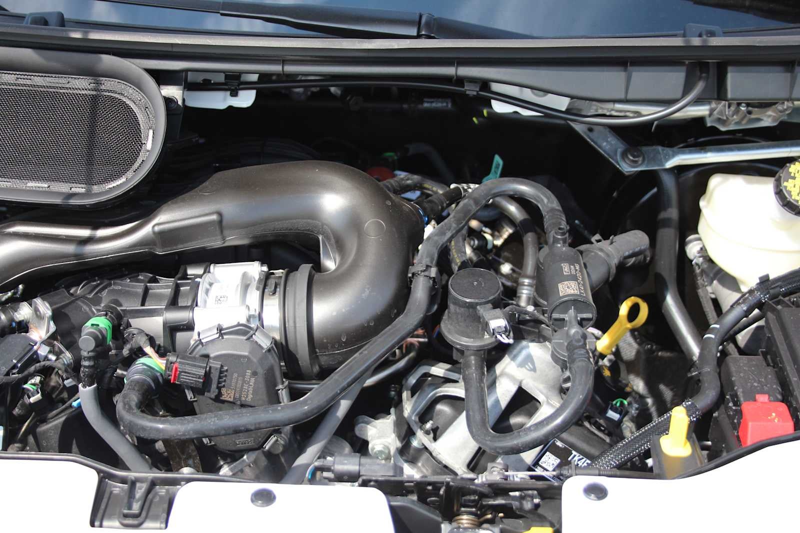TRANSMISSION: 10-SPD AUTOMATIC W/OD & SELECTSHIFT auxiliary transmission oil cooler (STD). Ford Transit Cargo Van with Oxford White exterior and Dark Palazzo Gray interior features a V6 Cylinder Engine with 275 HP at 6250 RPM*.