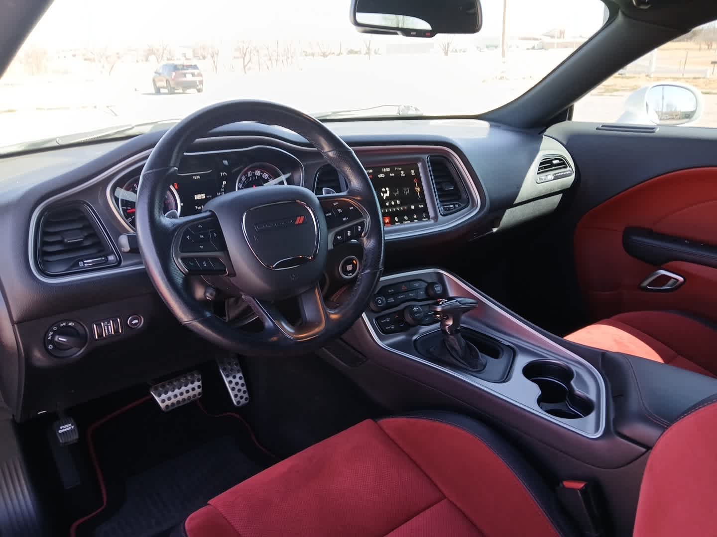 Heated Driver Seat, Back-Up Camera, Satellite Radio, iPod/MP3 Input, Onboard Communications System. Non-Smoker vehicle Dodge R/T Scat Pack Widebody with White Knuckle Clearcoat exterior and Ruby Red/Black interior features a 8 Cylinder Engine with 485 HP at 6100 RPM*.