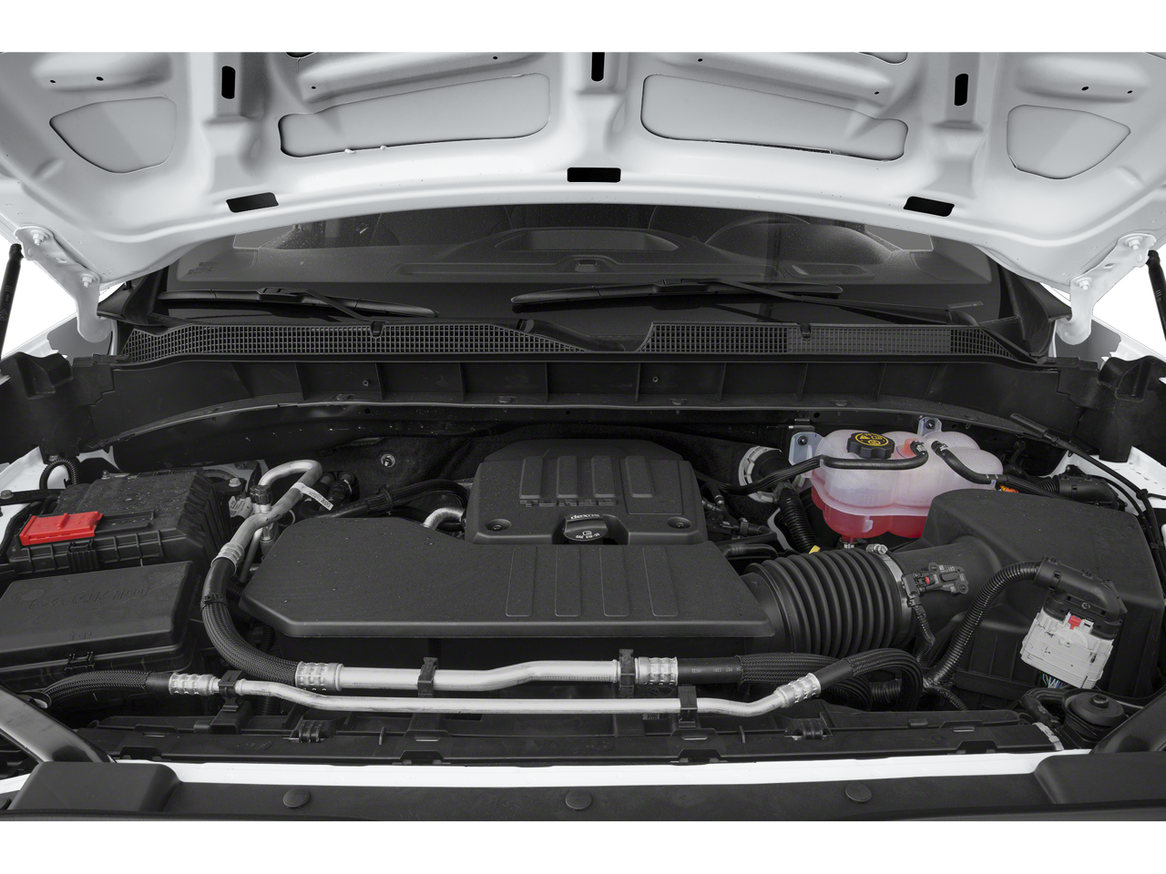 AUTO-LOCKING REAR DIFFERENTIAL, AUDIO SYSTEM, CHEVROLET INFOTAINMENT 3 SYSTEM 7 diagonal color touchscreen, AM/FM stereo. Additional features for compatible phones include: Bluetooth® audio streaming for 2 active devices, voice command pass-through to phone, wired Apple CarPlay® and Android Auto® capable. (STD), ENGINE, 2.7L TURBO HIGH-OUTPUT (310 hp [231 kW] @ 5600 rpm, 430 lb-ft of torque [583 Nm] @ 3000 rpm) (STD), TRANSMISSION, 8-SPEED AUTOMATIC, ELECTRONICALLY CONTROLLED with overdrive and tow/haul mode. Includes Cruise Grade Braking and Powertrain Grade Braking (STD). Chevrolet Custom with Summit White exterior and Jet Black interior features a 4 Cylinder Engine with 310 HP at 5600 RPM*.