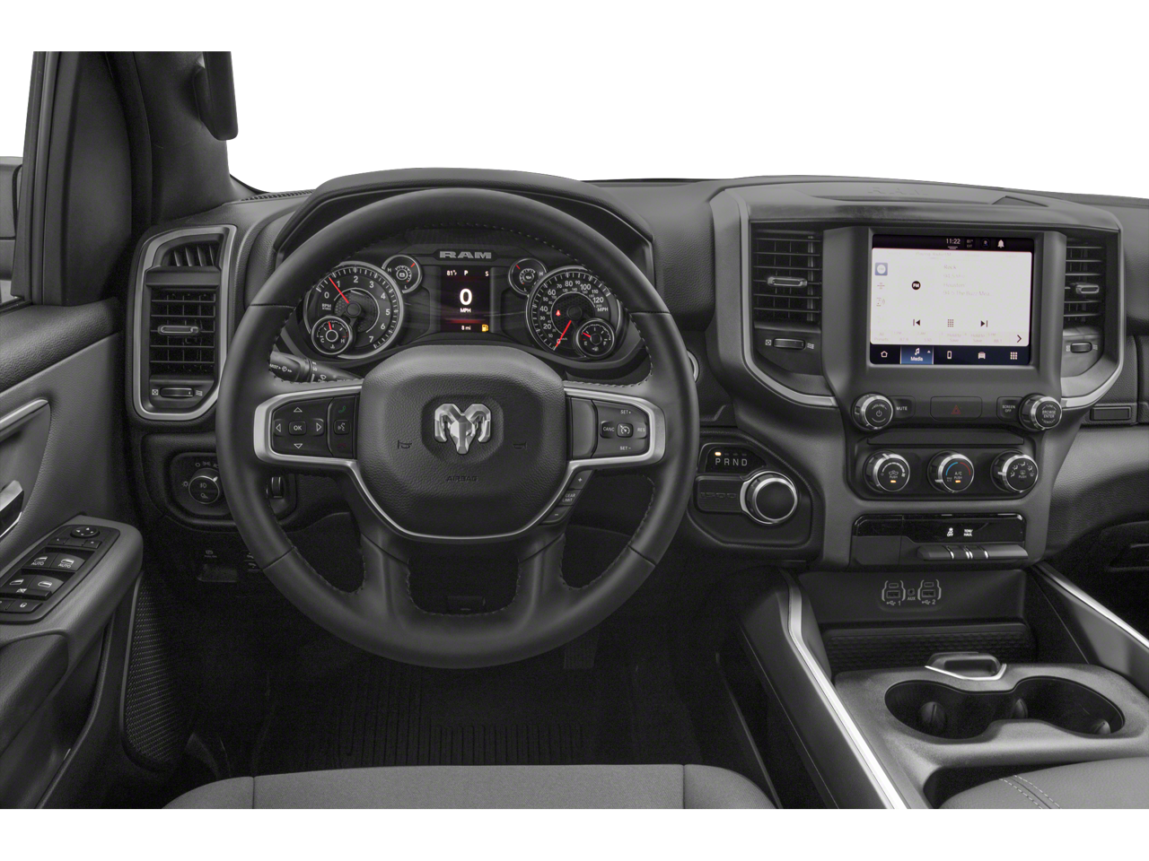 ENGINE: 5.7L V8 HEMI MDS VVT Active Noise Control System, Heavy Duty Engine Cooling, Passive Tuned Mass Damper, GVWR: 7,100 lbs, Dual Rear Exhaust w/Bright Tips, HEMI Badge, 26 Gallon Fuel Tank, BIG HORN LEVEL 1 EQUIPMENT GROUP Google Android Auto®, SiriusXM Radio Service, Bluetooth® Handsfree Phone & Audio, USB Host Flip, Rear Window Defroster, Integrated Center Stack Radio, Rear View Auto Dim Mirror, For Details, Visit DriveUconnect.com, Power Adjustable Pedals, For More Info, Call 800-643-2112, Rear Power Sliding Window, Rear Dome w/On/Off Switch Lamp, Connectivity - US/Canada, Glove Box Lamp, 4G LTE Wi-Fi Hot Spot, Exterior Mirrors w/Heating Element, Power 8-Way Driver Seat, Auto Dim Exterior Driver Mirror, Radio: Uconnect 5 W w/8.4 Display, 8.4 Touchscreen Display, Class IV Receiver Hitch, Black Premium Power Mirrors, Apple CarPlay®, Big Horn IP Badge, SiriusXM Satellite Radio, Exterior Mirrors w/Supplemental Signals, Exterior Mirrors Courtesy Lamps, Universal Garage Door, OFF ROAD GROUP Off Road Decals, Steering Gear Skid Plate, Front Suspension Skid Plate, Raised Ride Height, Front Extra HD Shock Absorbers, Rear Extra HD Shock Absorbers, Full Size Spare Tire, Tow Hooks, E-Locker Rear Axle, Transfer Case Skid Plate, Fuel Tank Skid Plate, Hill Descent Control, All Plant-Installed Decals, BLACK, DELUXE CLOTH BUCKET SEATS Power 8-Way Driver Seat, Bucket Seats, Full Length Floor Console, Delete LED Lamp - Floor Console Bin, Power 2-Way Driver Lumbar Adjust, TRANSMISSION: 8-SPEED AUTOMATIC (8HP75).