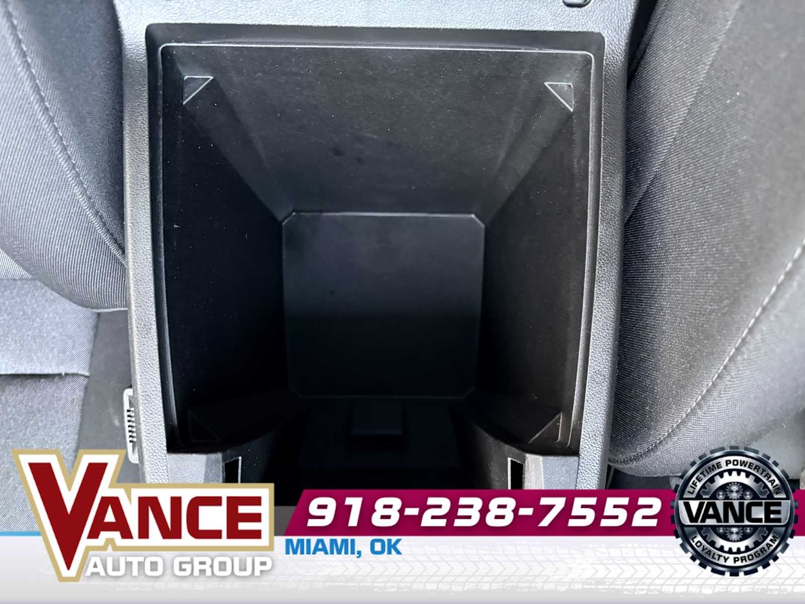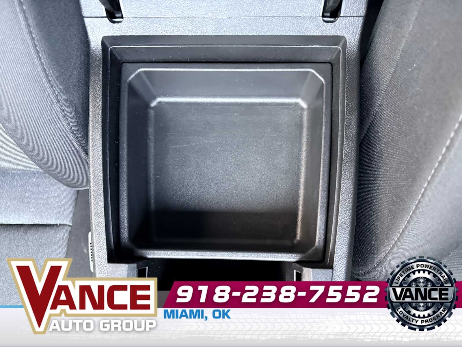- Console, floor front compartment with cup holders and cell phone storage