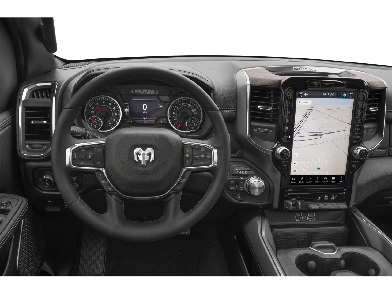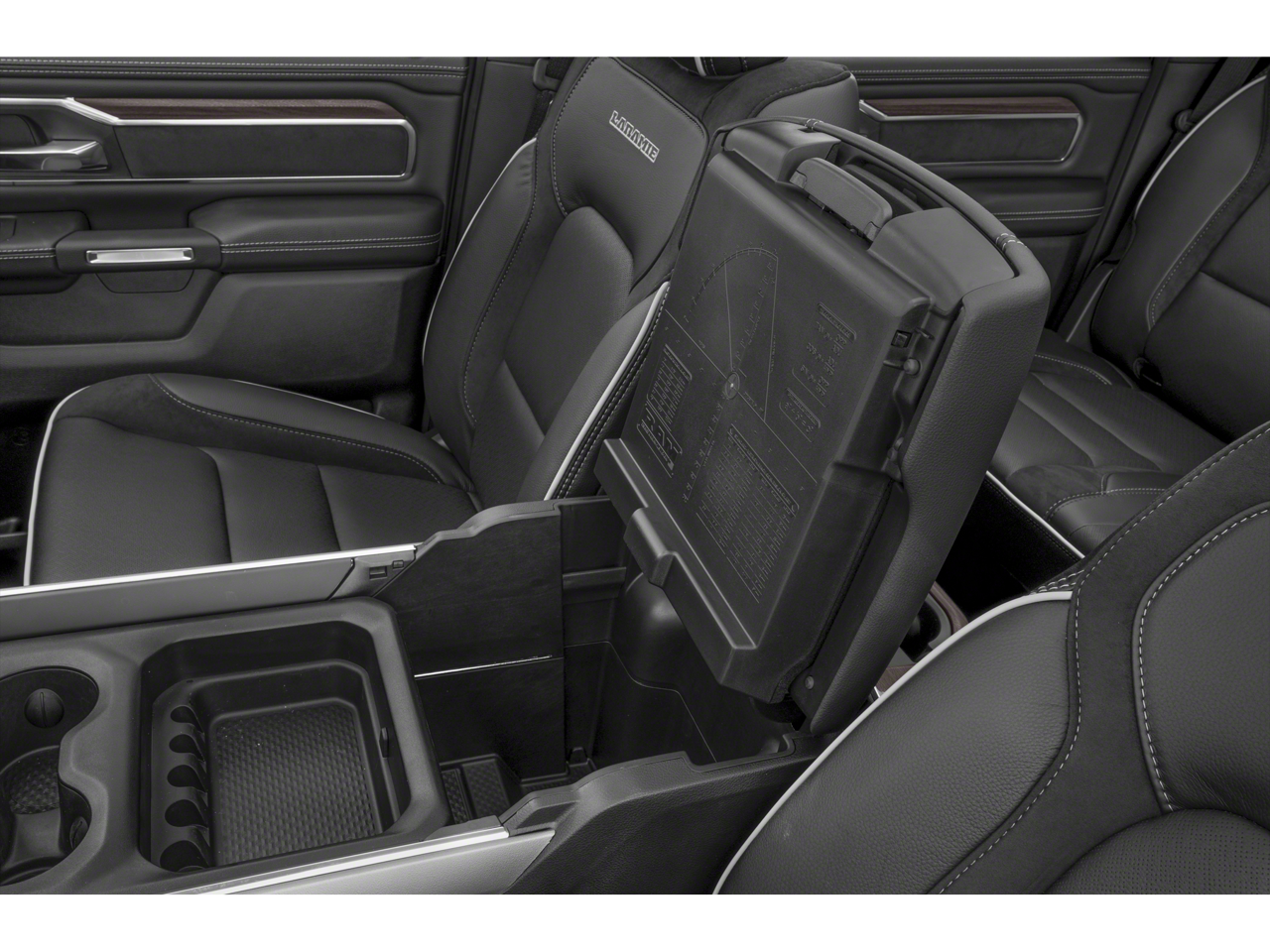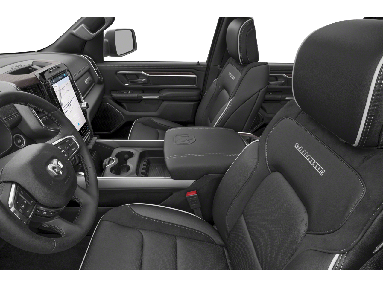ADVANCED SAFETY GROUP II Exterior Mirrors Approach Lamps, Active Driving Assist System, Surround View Camera System, Evasive Steer Assist, Drowsy Driver Detection, Intersection Collision Assist System, Traffic Sign Recognition, 12-Way/1-Way Trailer Connector, LARAMIE LEVEL 2 EQUIPMENT GROUP Rain Sensitive Windshield Wipers, 14.4 Touchscreen Display, Radio: Uconnect 5 Nav w/14.4 Display, harman/kardon® 19 Speaker Premium Sound, Cluster 12 TFT Color Display, Power Tailgate, SPORT APPEARANCE PACKAGE Tires: 275/55R20 OWL All Season, Accent Color Premium Power Mirrors, Sport Performance Hood, Black Interior Accents, Body Color Front Bumper, Body Color Rear Bumper w/Step Pads, Bridgestone Brand Tires, Grille Surround 3 Body Color Tex 2 Black, Black Painted Exterior Mirrors Caps, TECHNOLOGY GROUP Head Up Display, LED CHMSL Lamp, 12-Way/1-Way Trailer Connector, TRANSMISSION: 8-SPEED AUTOMATIC (8HP75) (STD), ENGINE: 3.0L I6 HURRICANE SO TWIN TURBO ESS (STD), BLACK, LEATHER TRIMMED BUCKET SEATS Bucket Seats, Rear 60/40 Folding Split Recline Seat, #1 Seat Foam Cushion, Center Console Parts Module, Heated Second Row Seats, Power Adjust 8-Way Driver Seat, Full Length Upgraded Floor Console.