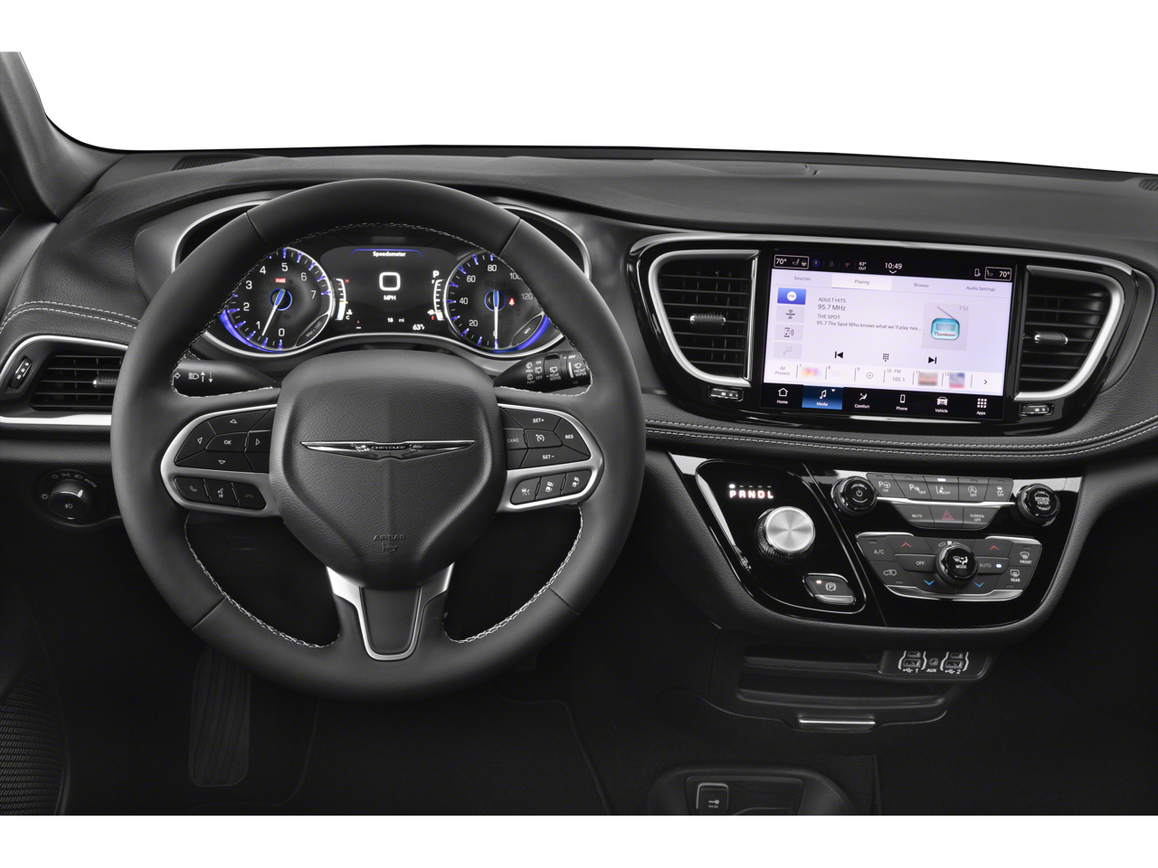 SAFETY SPHERE ParkSense Front/Rear Park Assist w/Stop, 360 Surround View Camera System, TRANSMISSION: 9-SPEED 948TE AUTOMATIC (STD), ENGINE: 3.6L V6 24V VVT UPG I W/ESS (STD). Chrysler Select with Hydro Blue Pearlcoat exterior and Black interior features a V6 Cylinder Engine with 287 HP at 6400 RPM*.